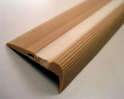 そこで弊社は階段用滑り止めのその長手方向に穴を設け、その穴の表面側を光の透過体で形成したことを特徴とし、その穴の中に灯体を入れ一体化することが出来ることを特徴とする階段用滑り止めを考案しました。